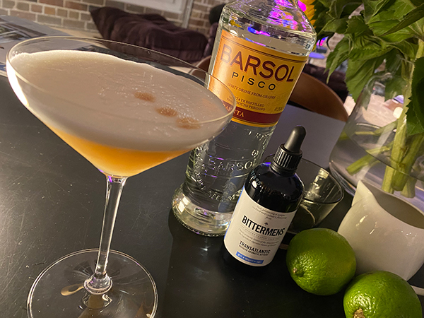 TASTING NOTES – I am not South American, and I can’t say that the flavour of neat Pisco has strong appeal for me. Quality Peruvian or Chilean Pisco has some umami to it, that by comparison most Vodka’s do not. However for some reason, Pisco just really works in a ‘sour’. It could even be legitimately argued that a ‘Pisco Sour’ is the king of sour cocktails. Like Amaretto, the citrus, sour and foam just bring the whole blend together. In this Sydney lock-down, I haven’t got easy access to Amargo Chuncho Bitters and have gone instead with Bittermens’ Transatlantic Bitters. Bittermens’ for this creation, took their inspiration from the best bitters of the Americas, combined with European stalwarts in a cross-over blend. Since the ‘Pisco Sour’ cocktail is a true ‘cross-over’, I feel this is a reasonable practical choice, and the ‘Transatlantic’ has the cinnamon notes you find in ‘Amargo Chuncho’ that a Pisco Sour benefits from. Thanks to my friend Robert, I have been returned to the wonder of a Pisco Sour.