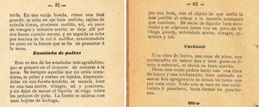 The translation includes “an egg white, a glass of Pisco, a teaspoon of fine sugar, and a few drops of lime as desired, this will open your appetite”, clearly the recipe of a ‘Pisco Sour’, highly comparable to the recipes of Pisco Sour variations used today. This ‘Pisco Cocktail’ may have been around for sometime prior to 1903 in South America, but this puts into serious question any case for a later historical attribution date.