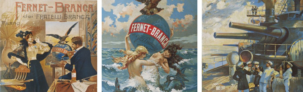Fernet Branca deserves its own history. Formulated in Milan, Italy in 1845 it was initially proposed as a herbal cure for Cholera and menstrual cramps. In 1886 it was promoted through calendars with art from famous artists, and from 1919 it became very popular in the USA during prohibition (1920-1933) as it was sold in pharmacies as a medicinal product (with 39% alcohol – wink, wink).